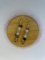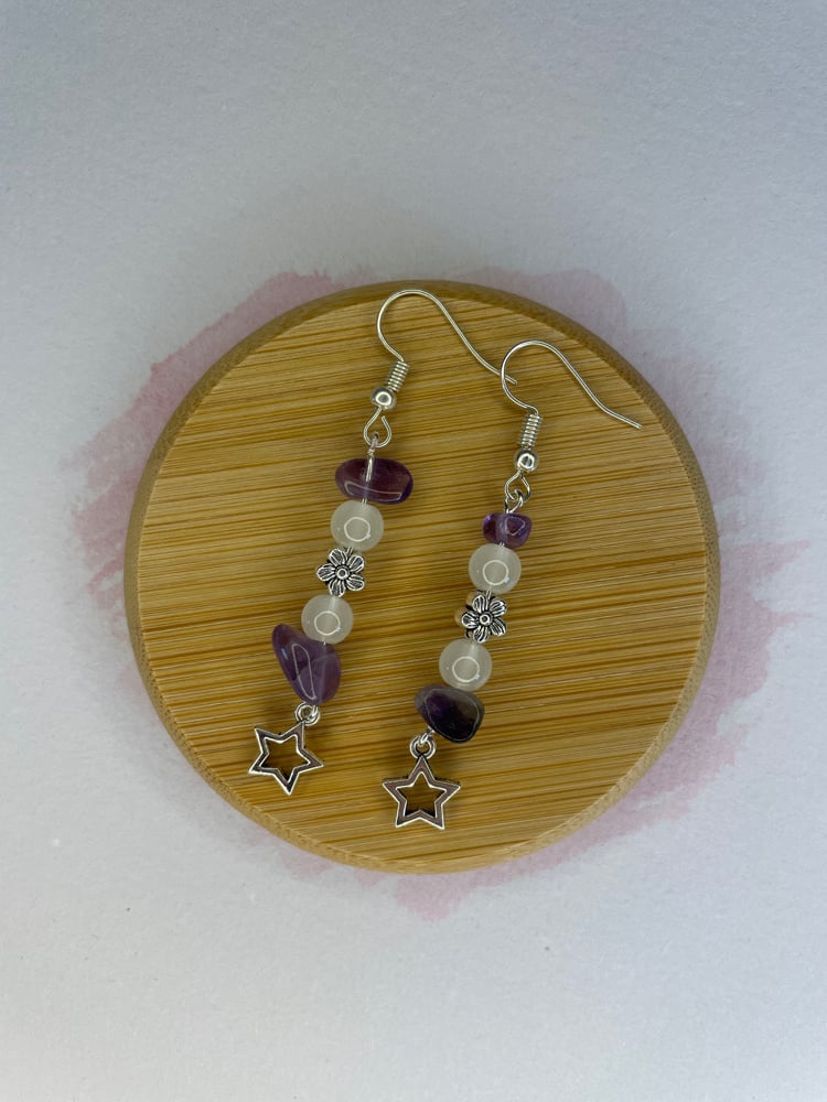 Some of our favourite amethyst earrings with a collection of beads and star charms made to make you feel good while wearing them.