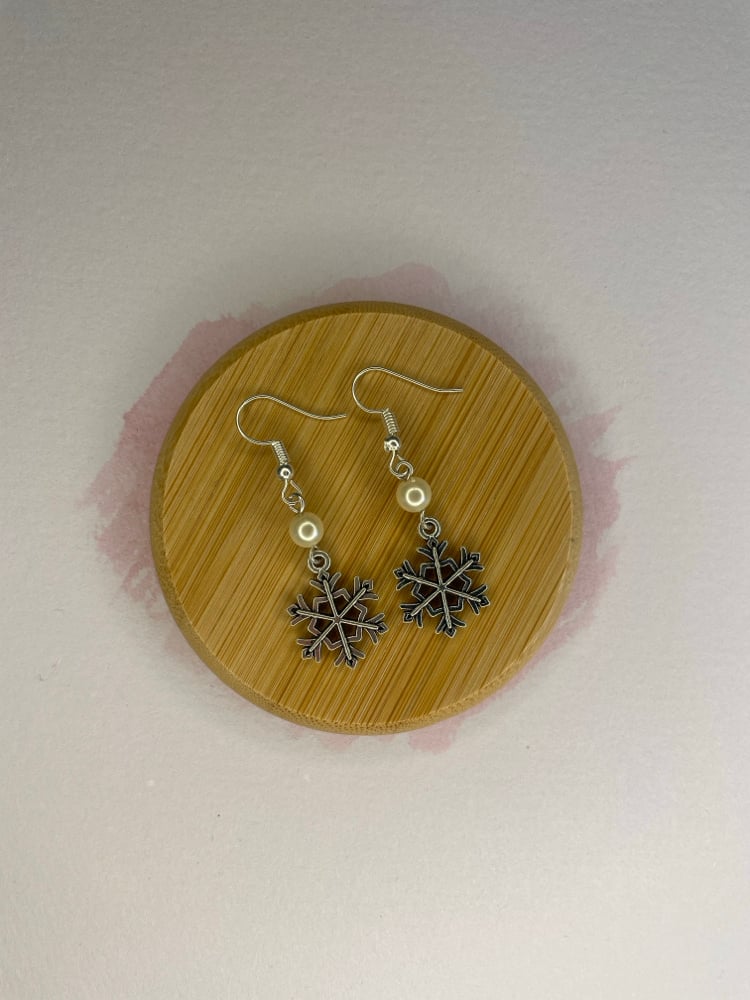 Pearl snowflake earrings perfect for Christmas and winter lovers.